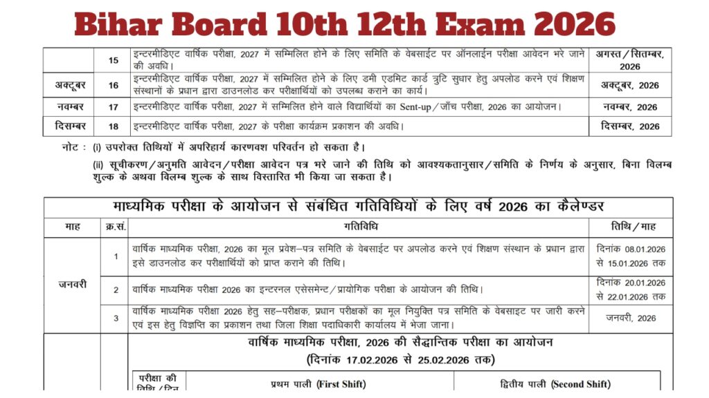 Bihar Board Exam Date 2026: The Bihar School Examination Board (BSEB) released the timetable for the high school and intermediate