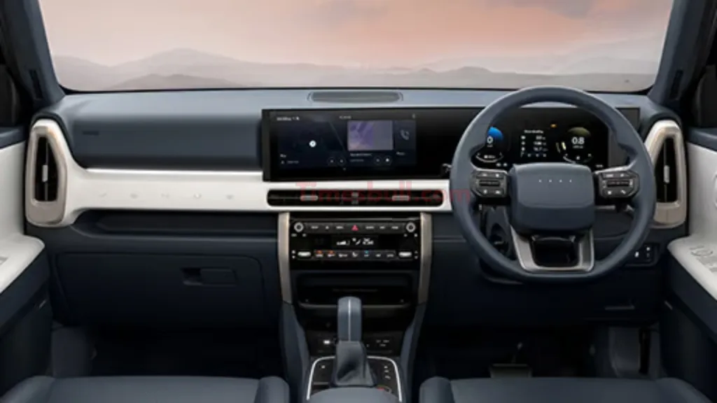 The Hyundai logo is also beautifully finished in matte black, and the striking ‘Knight’ badge on the tailgate perfectly distinguishes it from the standard Venue. The 16-inch black alloy wheels and new, vibrant colors like ‘Hazel Blue Matte’ give it a powerful, road-going presence, ensuring its unwavering presence on the streets of Varanasi.