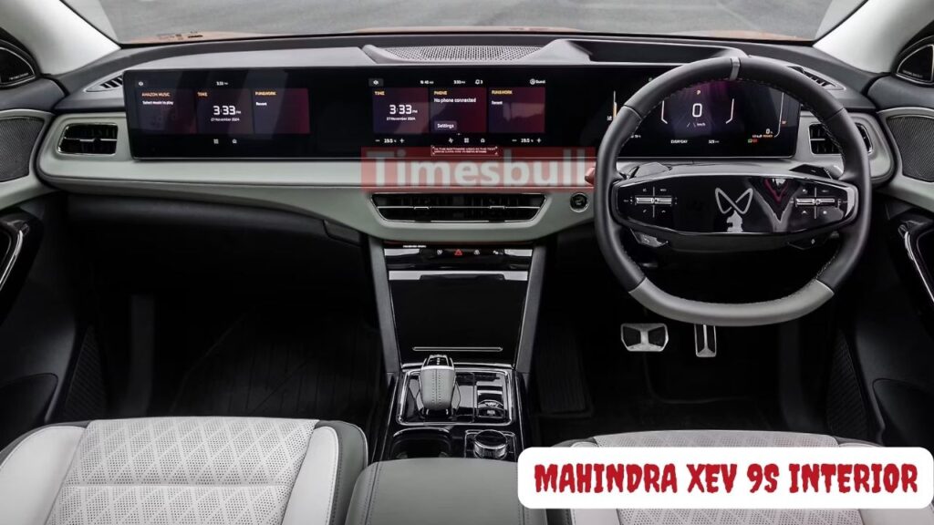 Let me tell you that Mahindra has reflected in its teaser videos that the interior of the XEV 9S will be largely like the XEV 9e. It is seen peeping inside three large 12.3-inch Display Screens, which are beautifully integrated into the dashboard.