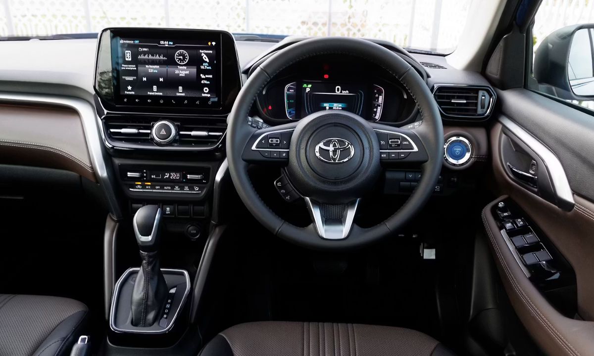 While the Toyota Hyryder comes with a 9 inch touchscreen infotainment system with a 7-inch fully digital instrument cluster with wireless Android auto with apple carplay connectivity. The Toyota Hyryder also offers automatic AC controls, cruise control, automatic irvm, electrically adjustable and foldable ORVMs, Steering Wheel mounted control, an electronic panoramic sunroof, rear AC vents, a push-button start stop engine, a head-up display, a 360 degree camera, an 8-way adjustable driver’s seat And Dual Zone climate control.