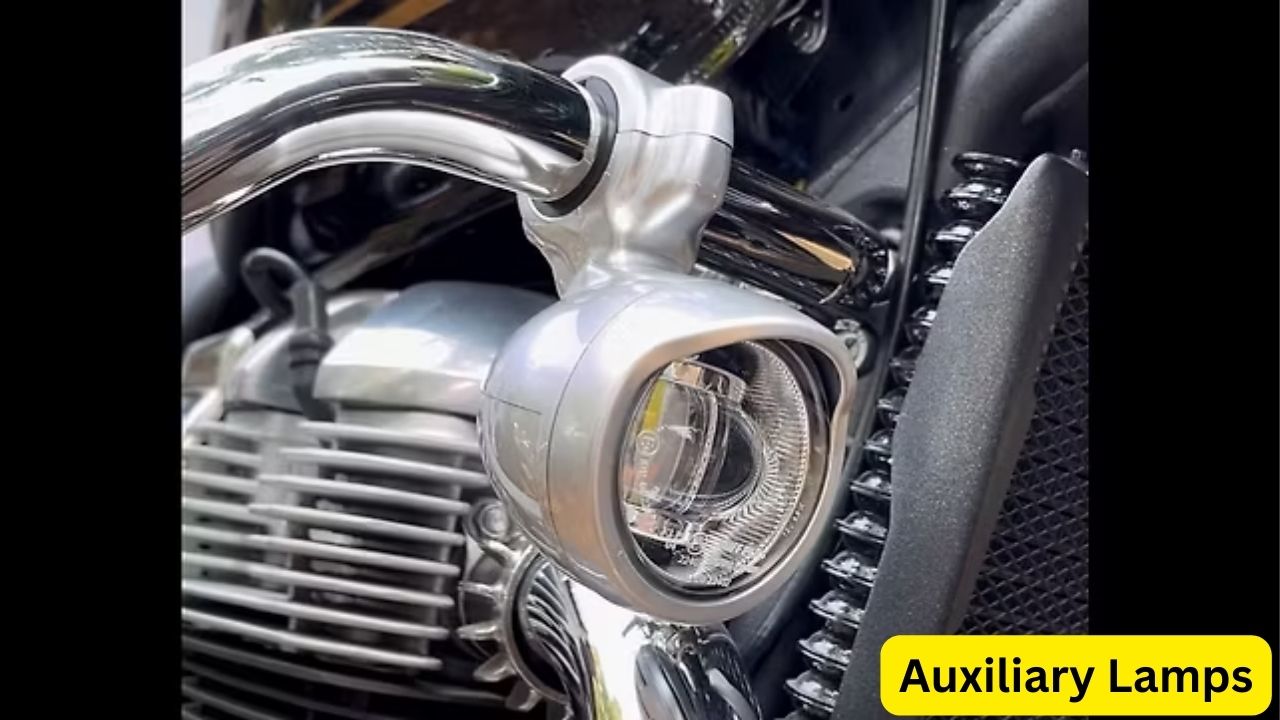 The Bullet 650 features the same circular LED headlamp seen on many other Royal Enfield bikes. However, its illumination isn’t considered as accurate when touring. Therefore, a set of auxiliary lamps was added to the accessorized Bullet 650, making night riding safer, clearer, and longer.