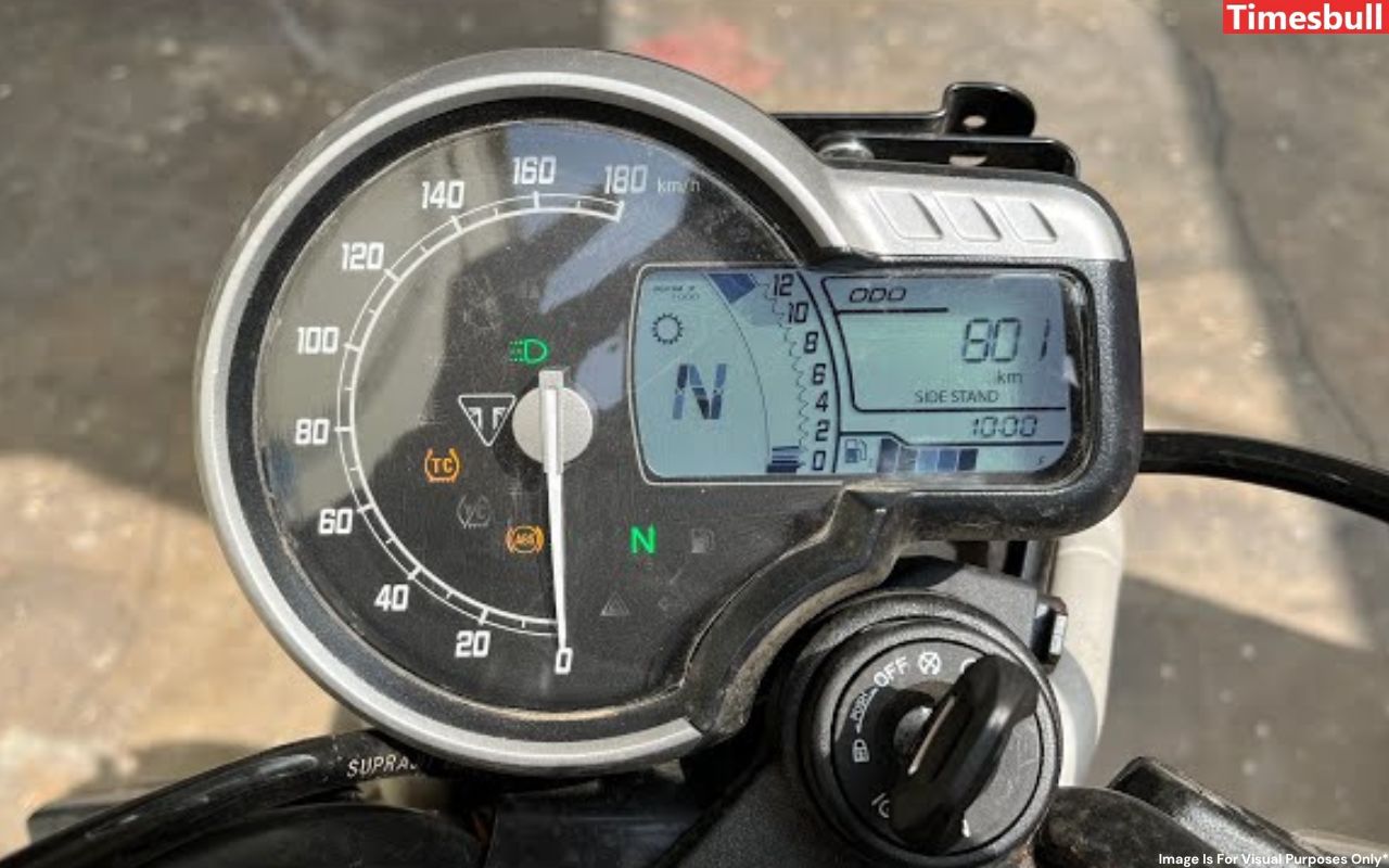 This new Triumph bike will have rubber pads on the fuel tank and a simple unit on the handlebar without brake pads. It has an electronic throttle control system. Which will be in manual mode and the instrument cluster will be semi-digital.