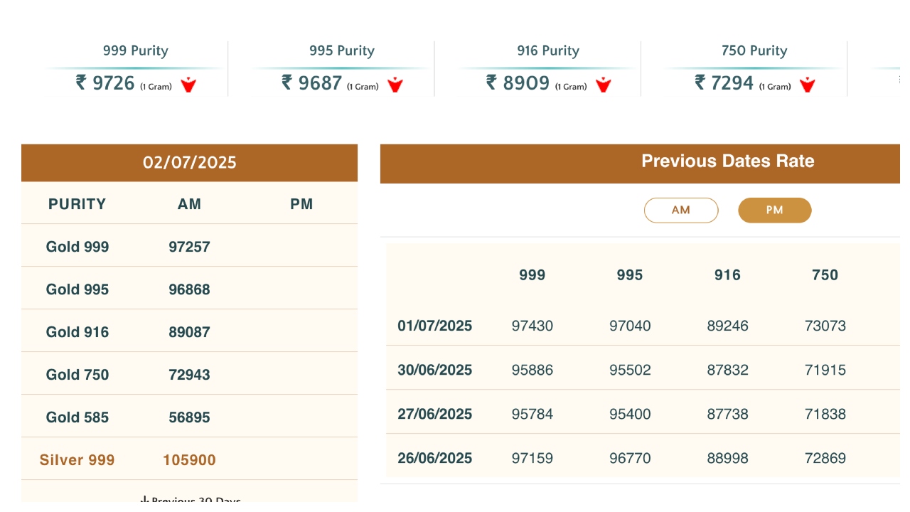 Gold Price Today:- There was a slight decline in the price of gold in the past days, but now the decline in the price of gold has been stopped. Today is the second day of the month, and the price of gold has risen. The price of gold and silver is fluctuating every day. The price of gold has reached its high level. The price of 24-carat gold in the bullion market is Rs 98,500 per 10 grams, and the rate of one kilogram of silver across the country is Rs 1,10,700 per kilogram. The latest rates of gold and silver were released by IBJA on July 2. If you are planning to buy gold, the current price of 999 purity gold is Rs 97257 per 10 grams. The price of 999 purity silver is Rs 105900. Please let us know the current gold rate in your city as of June 30.