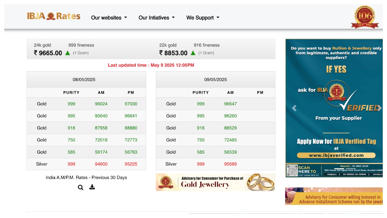 Please note that all gold and silver rates mentioned here include charges and GST. The rates issued by IBJA are uniform nationwide. No GST is included in this. GST must be paid separately on the making charge if you have jewellery made.