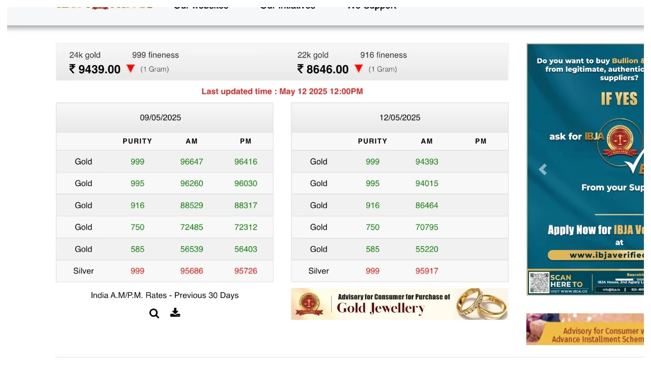 Please note that all gold and silver rates mentioned here include charges and GST. The rates issued by IBJA are uniform nationwide. No GST is included in this. GST must be paid separately on the making charge if you have jewellery made.