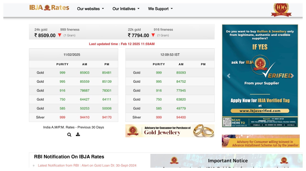 According to the official website ibjarates.com, 995 purity gold is Rs 84752 per 10 grams today. At the same time, the cost of 916 (22 carat) purity gold is Rs 77945 per 10 grams. Apart from this, the rate of 750 (18 carat) purity gold is Rs 63820 per 10 grams. At the same time, the price of 585 (14 carat) purity gold is Rs 49779 per 10 grams. At the same time, the price of silver is Rs 94400.