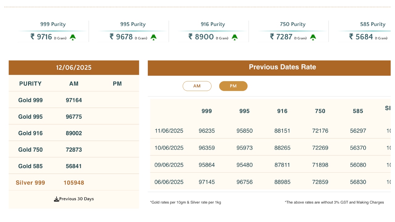 Please note that all gold and silver rates mentioned here include applicable charges and GST. The rates issued by IBJA are uniform nationwide. No GST is included in this. GST must be paid separately on the making charge if you have jewellery made. IBJA releases the rate twice a day. Once around noon, and the other around 5 pm