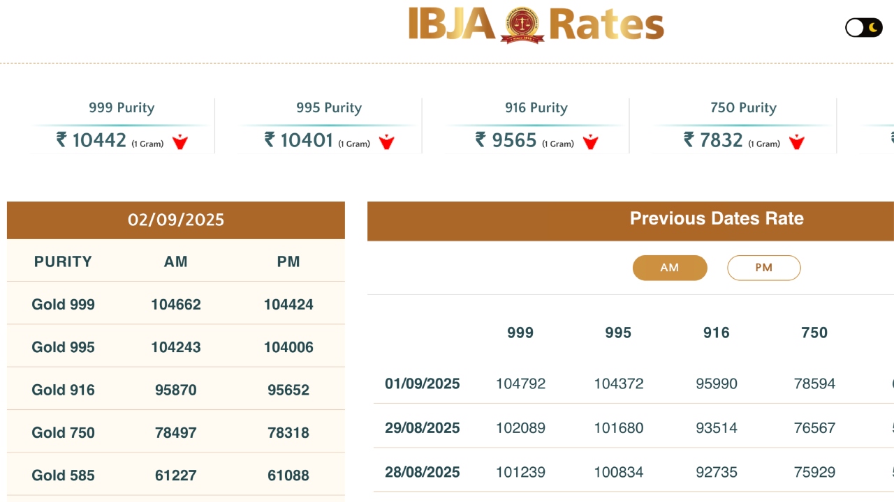Gold Rate Today: The prices of gold and silver have been in a continuous rise. In the Indian bullion market, on September 02, 2025, a jump in the prices of gold and silver has also been seen. According to the India Bullion and Jewellers Association, the price of 10 grams of 24-carat gold had reached 104662 by morning. At the same time, the price of 999 purity gold is Rs 104424 per tola. Gold and silver prices have decreased slightly in the Indian bullion market today.