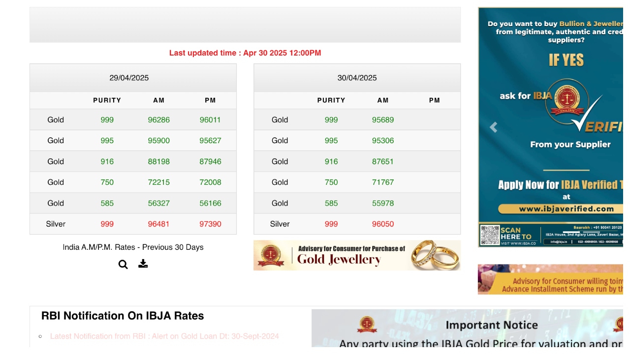 Please note that all gold and silver rates mentioned here are inclusive of charges and GST. The rates issued by IBJA are uniform throughout the nation. No GST is included in this. If you have jewellery made, then GST must be paid separately on the making charge.