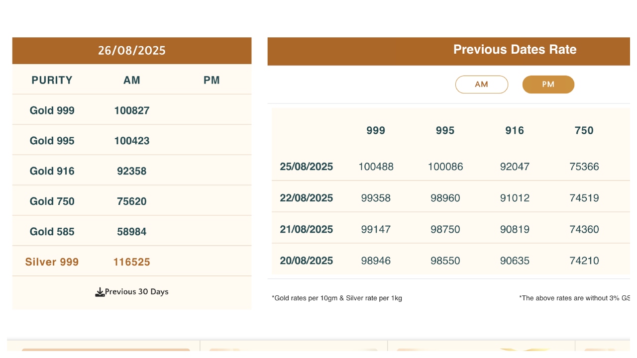 Gold Price Today: There has been a continuous rise in the prices of gold and silver. The gold rate has jumped again on Tuesday. With the rising gold rate, tension among women is increasing. It is also becoming difficult to guess when the gold rate will fall. The price of 24-carat gold has risen by Rs 339 to Rs 1,00,827 per 10 grams. On August 25, gold was at ₹ 1,00,488. Silver reached its all-time high on August 26. According to the India Bullion and Jewellers Association (IBJA), the price of silver has increased by Rs 392 to Rs 1,16,525 per kg. On August 26, the cost of silver was Rs 1,16,133. So, let’s find out what the gold rates are.