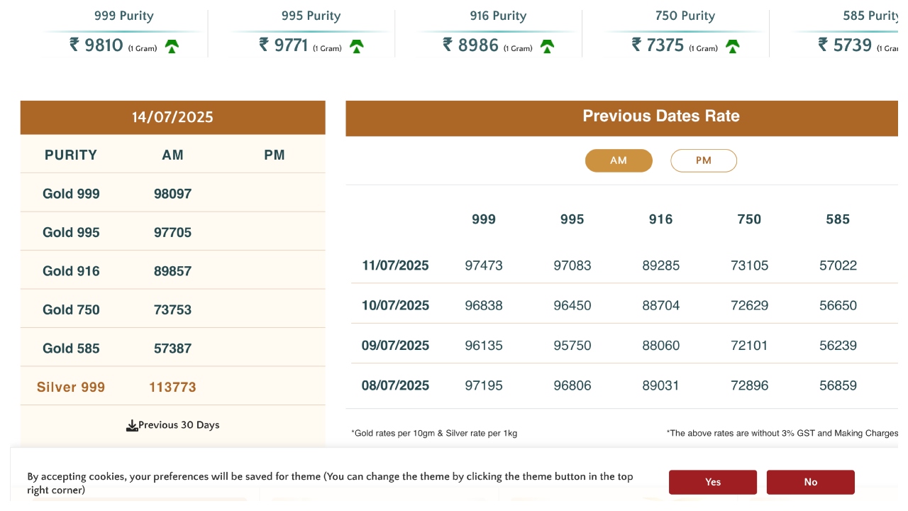 Gold Price Today: Gold prices have risen again today. Along with gold, silver prices have also increased. Last week, gold prices experienced a substantial rise on Friday. Gold has become costlier by ₹700 in Delhi and has reached ₹99,370 per 10 grams. If you are considering buying gold, please note that IBJA released the gold and silver rates on July 14. On July 14, 24-carat gold opened at Rs 98097 and silver opened at Rs 113773 per kg. Could you please let us know the latest rates for 22-carat and 18-carat gold?