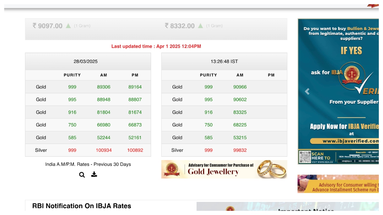 You can also check the price of gold and silver through missed calls. To know the cost of 22-carat and 18-carat gold, you have to give a missed call to 8955664433. Shortly after this, you will get the information on the rate through SMS. At the same time, you can know the morning and evening gold rate updates by visiting the official website ibjarates.com.