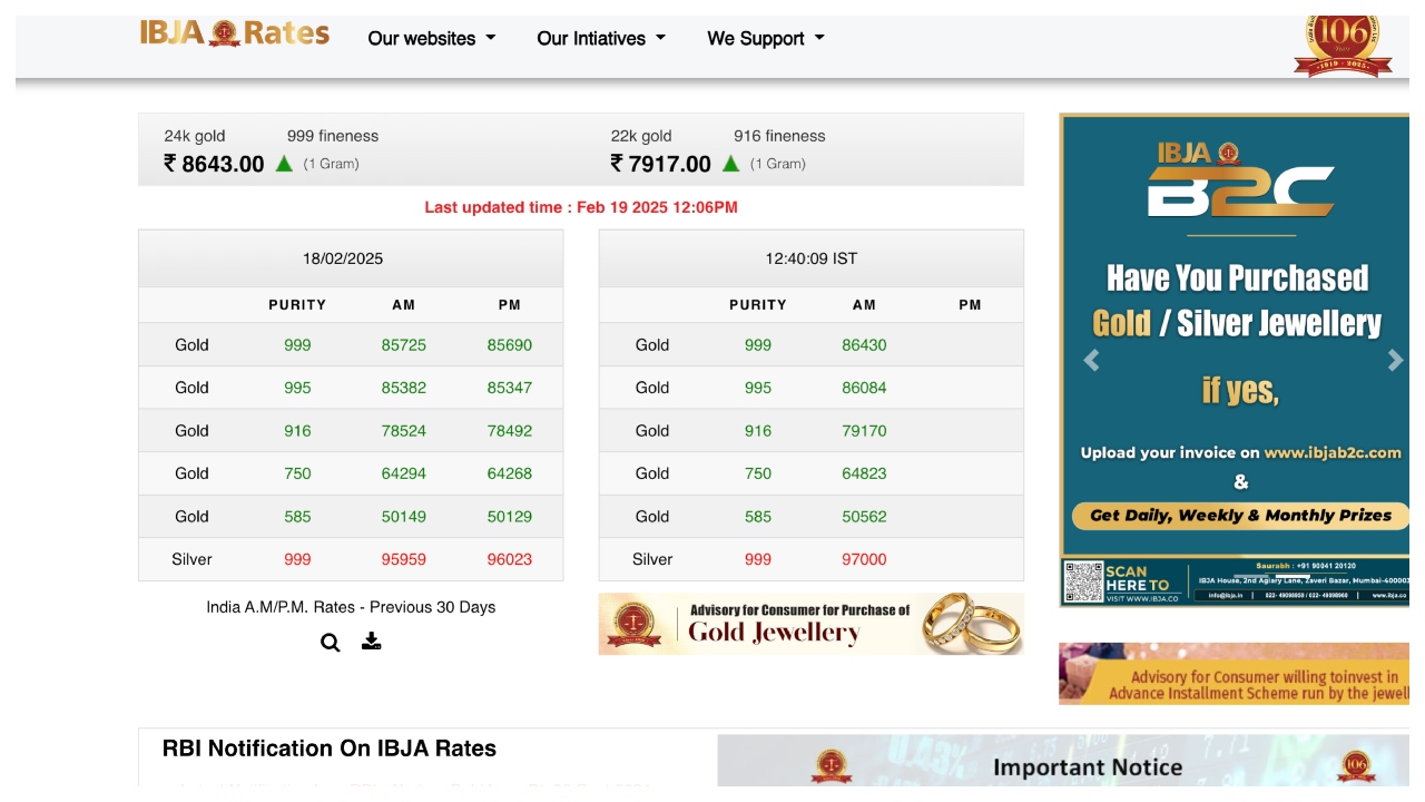 Gold Price Today:- The prices of gold and silver are once again on the rise. The rates of gold are continuously increasing. The rising rate of gold has kept people sad. Along with gold, the prices of silver are also seeing a rise. Today, i.e. on Wednesday, February 19, 2025, the price of 24-carat gold has increased to Rs 86430 per 10 grams against the previous close of Rs 85690.