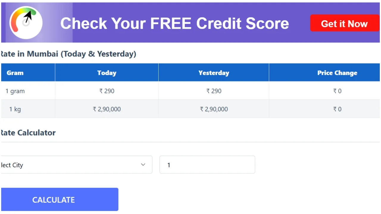 Before purchasing silver in the Indian bullion market, you can check the city-wise rates. In the national capital, Delhi, silver is trading steadily at ₹290,000 per kilogram.