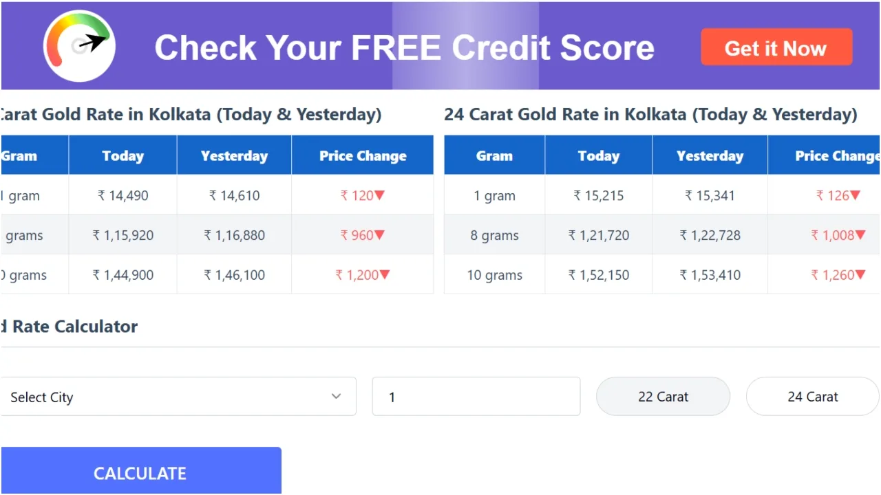 On Monday, the price of 22-carat gold in Kolkata was seen trending at a total of Rs 1,46,100, and the price of 24-carat gold was seen trending at a total of Rs 1,53,410 per tola.