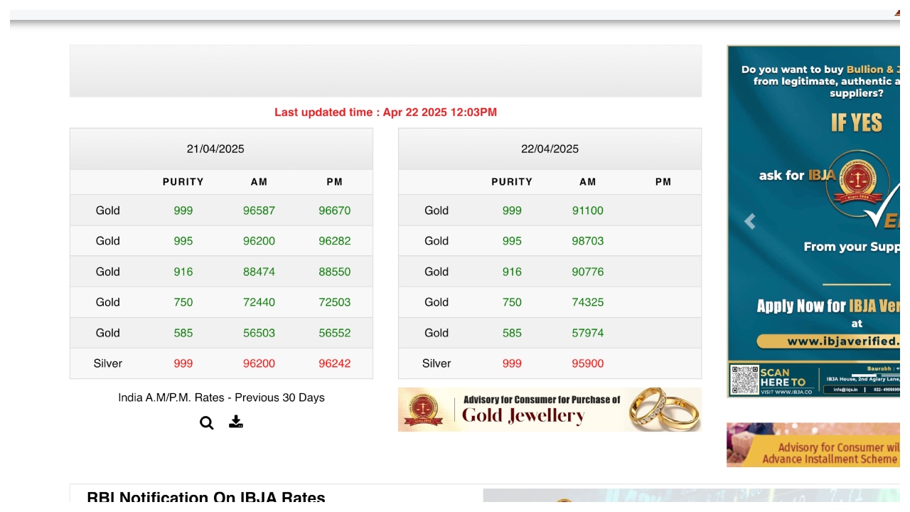According to the official website ibjarates.com, the price of 995 purity gold is Rs 98703 per 10 grams as of today. At the same time, the price of 916 (22 carat) purity gold is Rs 90776 per 10 grams. The 750 (18 carat) purity gold rate is Rs 74325 per 10 grams. At the same time, 585 (14-carat) purity gold is priced at Rs 57,974 per 10 grams. Whereas, the price of silver has gone up to Rs 95900 per kg.
