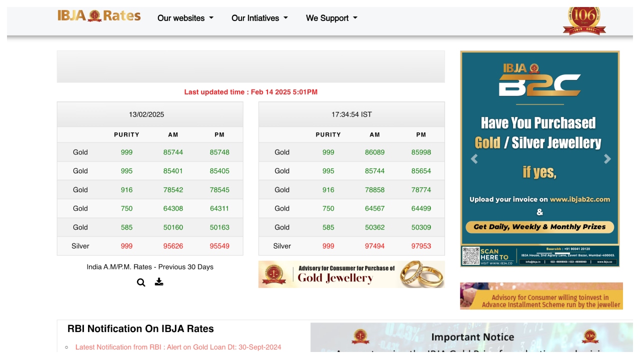 Please note that the rates issued by the Indian Bullion Jewelers Association are accepted across the country, but GST is not included in their prices. The rates of gold or silver are higher after-tax when buying jewellery.
