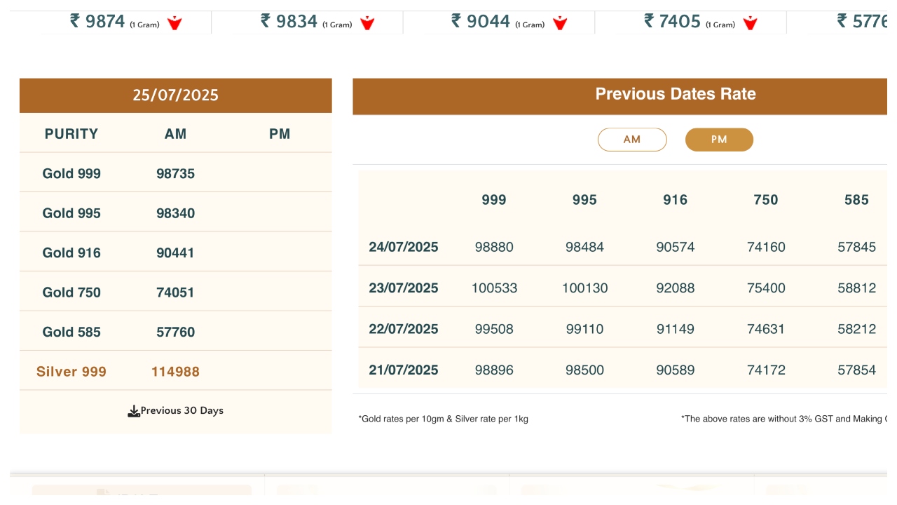 Today, the price of 24-carat gold in Indian rupees is Rs 95583 per 10 grams. Whereas, the price of 22-carat gold is Rs 8,815 per 10 grams. There has been a decline in the price of 18-carat gold. On July 25, the price of 18-carat gold in Dubai is Rs 72,414 per 10 grams.