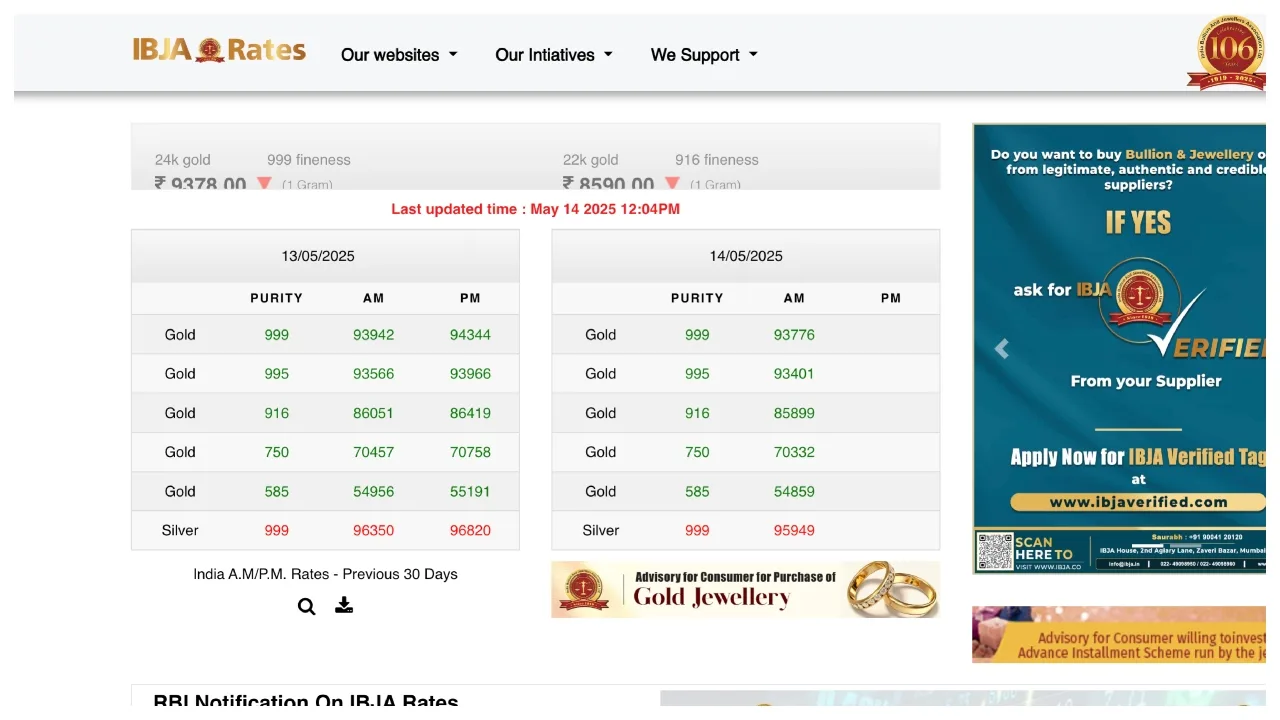 Please note that all gold and silver rates mentioned here include charges and GST. The rates issued by IBJA are uniform nationwide. No GST is included in this. GST must be paid separately on the making charge if you have jewellery made.