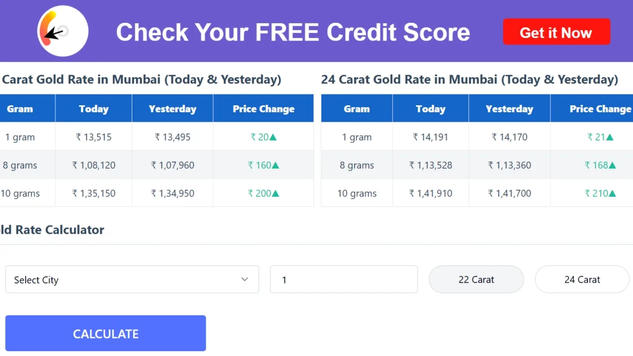 Check the Rates for 22-Carat and 24-Carat Gold.