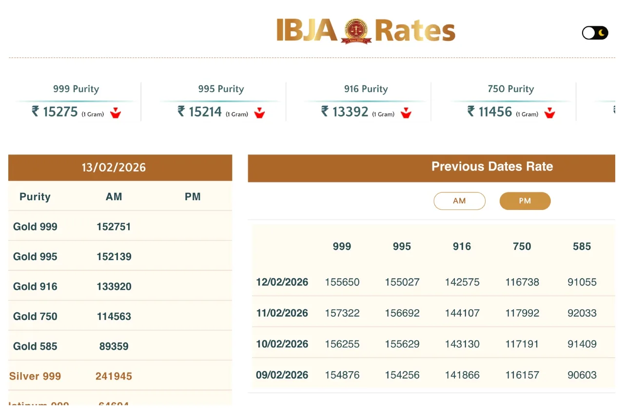 Gold Rate Down Today: Gold and silver prices fell sharply in the bullion markets today, February 13th. However, gold and silver prices on the MCX rose today. According to the India Bullion and Jewellers Association (IBJA), 24-carat gold fell by ₹2,899 to ₹152,751 per 10 grams. Earlier on Thursday, the price of 999 purity gold was ₹1,55,650 per 10 grams. Regarding silver, the price of one kilogram of silver fell by ₹17,188 today, Friday, to ₹2,41,945. Previously, on Thursday, the price was ₹2,59,133 per kg. In fact, its price has fallen by ₹24,000 over the past two days. GST is not included in these prices. If you are considering buying gold, you should check the latest gold rates beforehand.