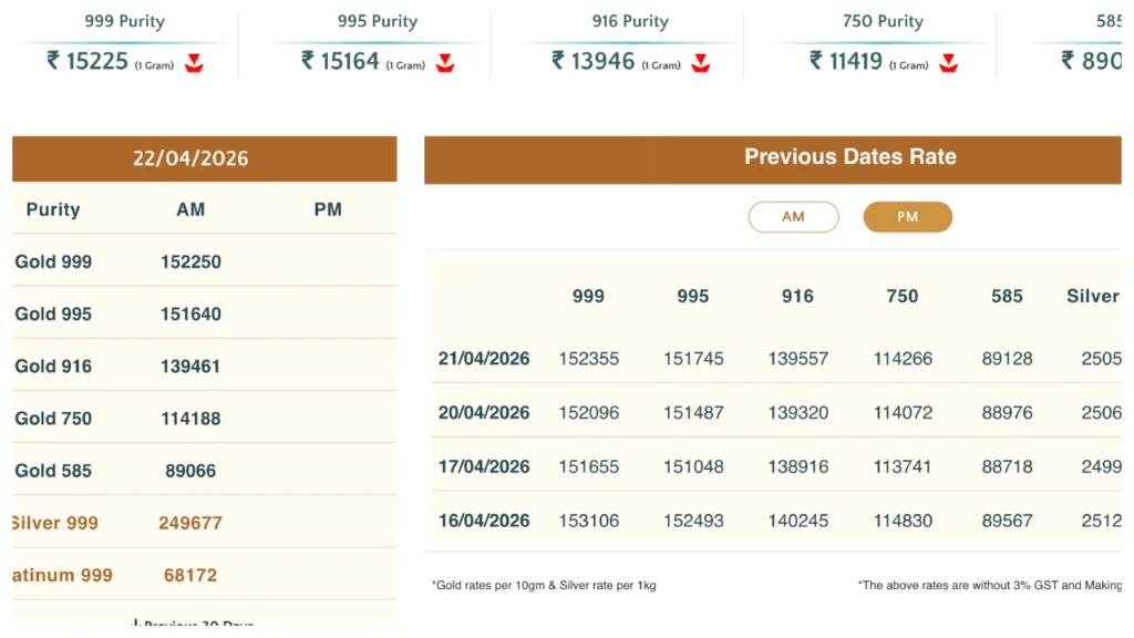 City-wise 24-Carat Gold Rates (April 22, 2026)