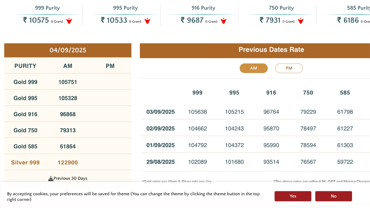 The price of silver is Rs 1,22,900 per kg. GST has not been added to these prices, and you will have to pay the making charge separately when buying jewellery.