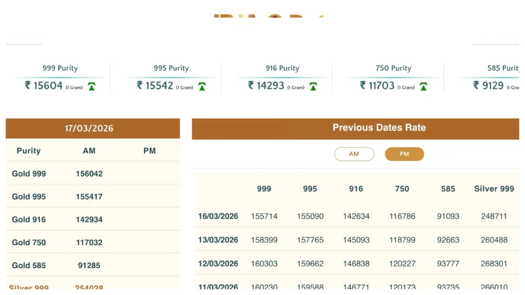 Gold & Silver Rates – March 17, 2026: Daily price fluctuations are observed in gold and silver. Gold rates are rising rapidly. While gold prices declined in recent days, they have now begun to trend upward again. Today—Tuesday—an increase in gold rates was witnessed. According to the India Bullion and Jewellers Association (IBJA), 999-purity gold is currently trading at ₹156,042 per 10 grams. Previously, on Monday, it was trading at ₹155,714 per 10 grams. Today, the price of gold has risen by ₹328. As for silver, the price per kilogram has increased by ₹5,000, reaching ₹2.54 lakh.