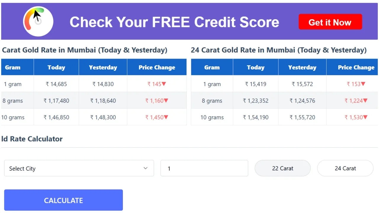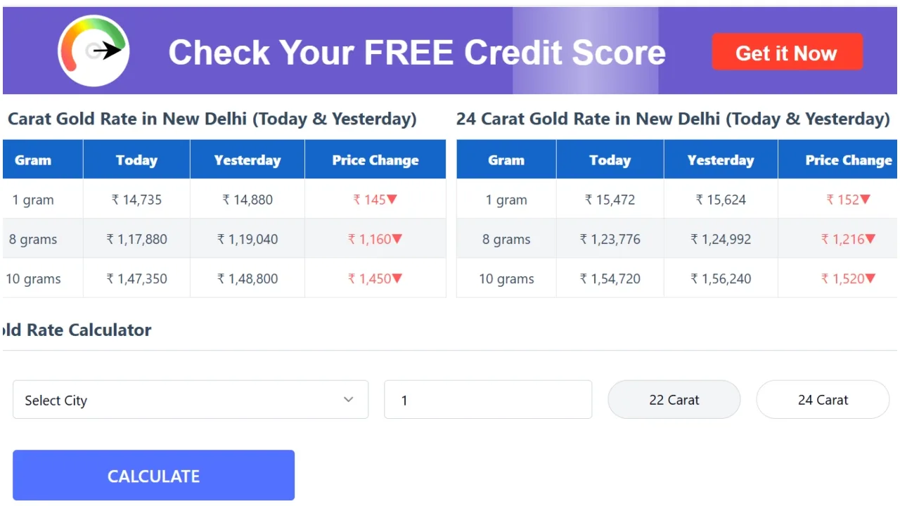 In Hyderabad, the capital of Telangana, the rate for 22-carat gold declined by ₹1,400, settling at ₹147,600 per 10 grams. Meanwhile, the price of 24-carat gold fell by ₹1,470 and appears to be trending at ₹154,980 per tola. A day earlier, 22-carat gold was priced at ₹149,000, while the price of 24-carat gold stood at ₹156,450 per 10 grams.