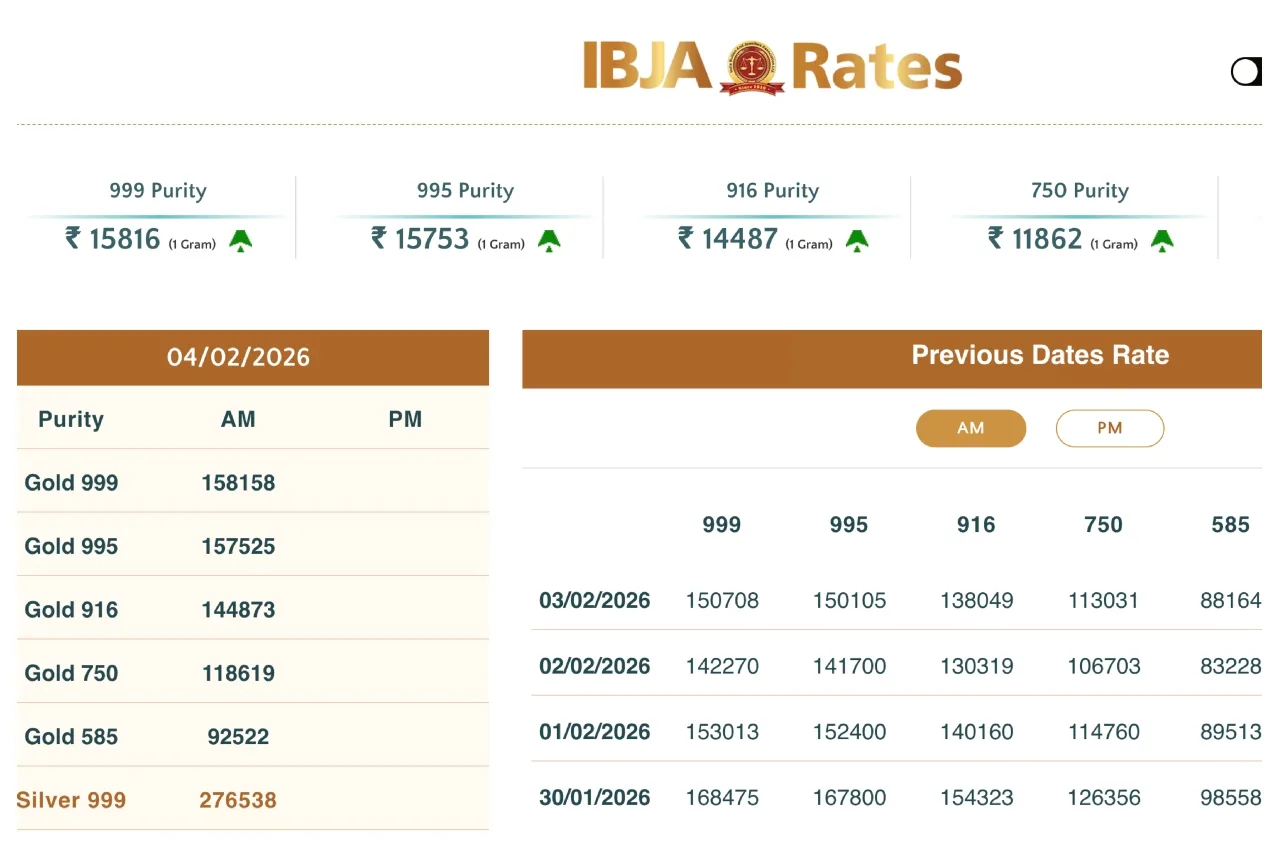 Gold Rate Hike: Gold and silver prices are rising. A significant increase in gold and silver rates was observed today, February 4th. According to the India Bullion and Jewellers Association (IBJA), the price of 10 grams of 24-carat gold in the bullion market increased by ₹6,629 to ₹1,58,158 today. Previously, it was at ₹1,51,529. Gold has risen by ₹9,412 in two days. Today, gold opened at ₹158,158 per 10 grams without GST.