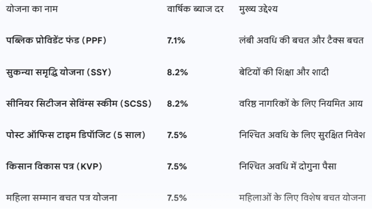 As you can see, Sukanya Samriddhi Yojana and Senior Citizen Savings Scheme are getting the highest interest of 8.2%, which is very beneficial, especially for the future of daughters and the financial security of senior citizens.