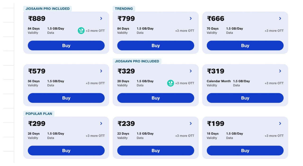 This Jio plan includes 1.5GB of data, 100 SMS, and unlimited daily calls. This Jio plan is being given a validity of 22 days. In this, users benefit from a total of 33GB of data. Users can access Jio TV, Jio Cinema, and Jio Cloud in the plan.