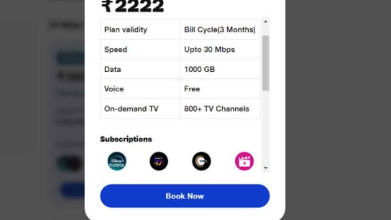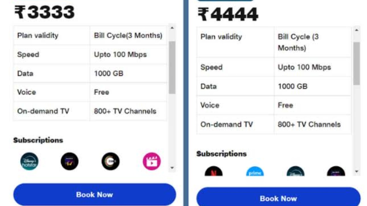 This plan comes with an internet speed of 100 Mbps. In this, you are being given 1000GB of high-speed data to use the internet. In this, you will get 200GB of extra data for 90 days without any additional charge. In this, you are being given access to more than 800 TV channels with free voice calling.