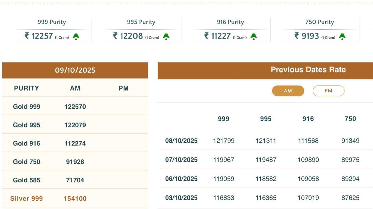 According to the rates published on ibjarates.com on the morning of October 9th, the price of 995 purity gold is ₹122089.
