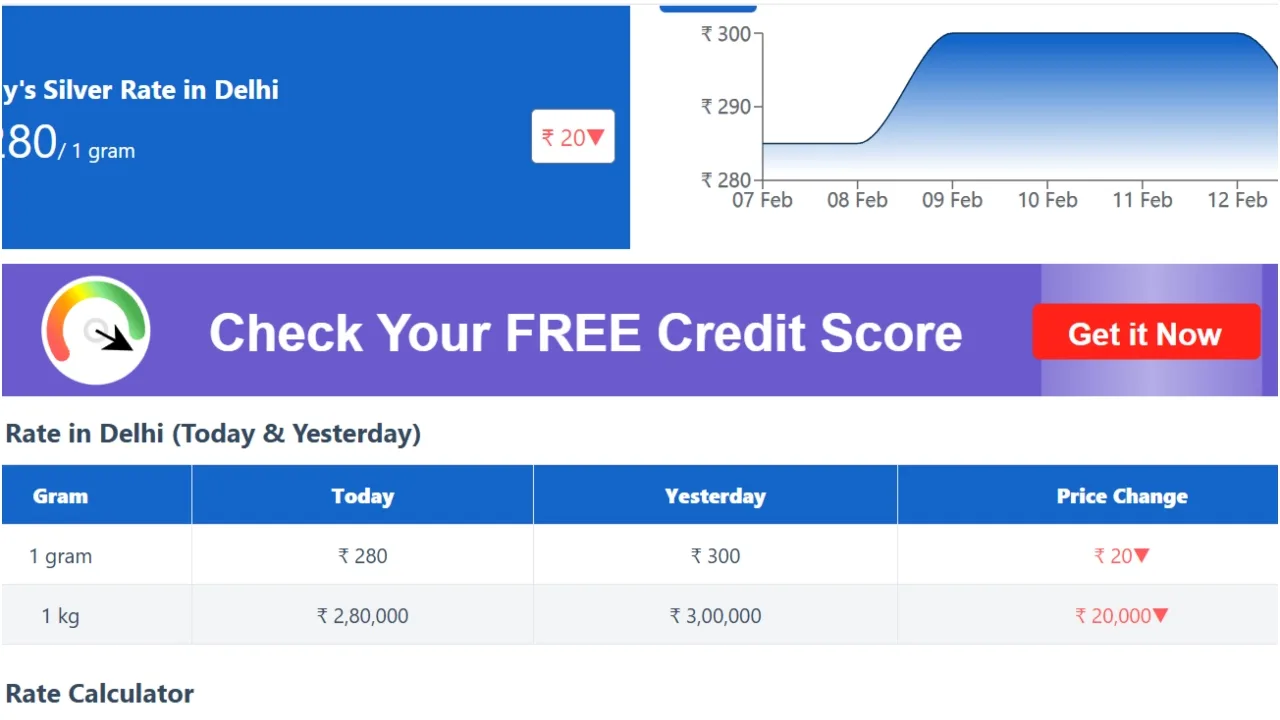 The lowest price these days was ₹275,000 per kilogram. Overall, the silver price has declined. On Saturday morning, February 14th, the price fell by ₹20,000 to ₹280,000 per kilogram.