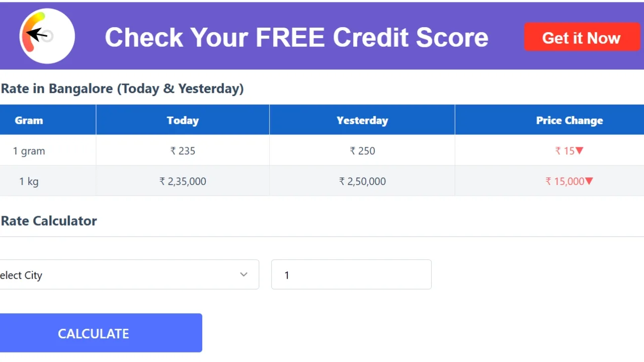 In Lucknow, the capital of Uttar Pradesh, a decline of ₹15,000 was also recorded in silver prices. The price here was seen trending at ₹235,000 per kilogram. The day before, the silver rate in the city stood at ₹250,000 per kilogram.