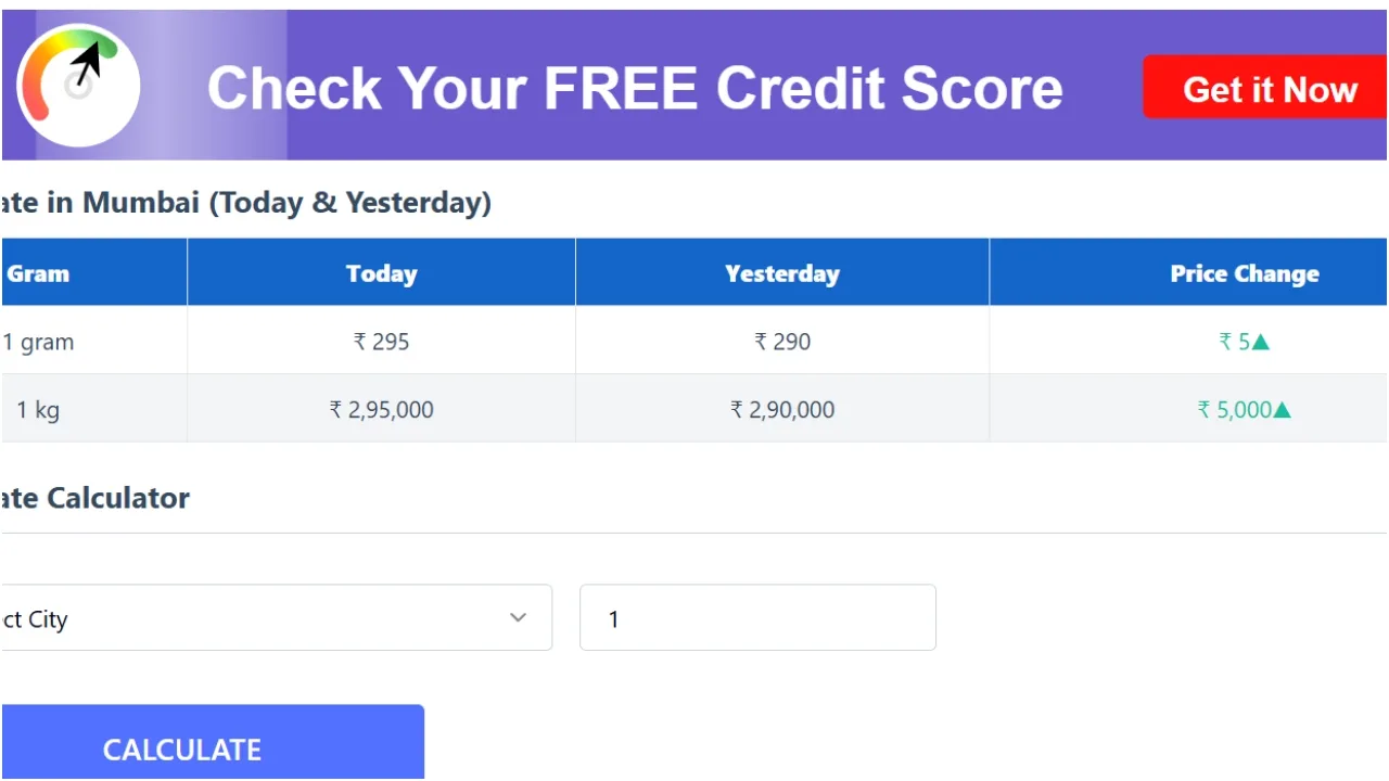 Silver prices in Kerala have also increased by ₹5,000 to reach ₹295,000 per kilogram. A day earlier, silver prices were trending at a total of ₹290,000 per kilogram. In Lucknow, the price of 999 purity silver increased by ₹5,000 to a total of ₹295,000 per kilogram. The silver rate here was recorded at ₹290,000 per kilogram yesterday.