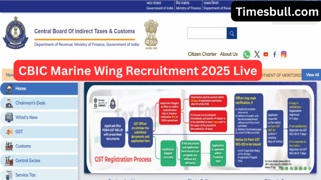 CBIC Marine Wing Recruitment 2025 Live. A great opportunity has emerged for young people preparing for government jobs. The Central