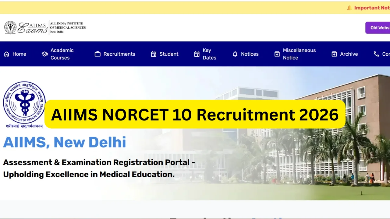 AIIMS NORCET 10 Recruitment 2026 : The All India Institute of Medical Sciences has published the official announcement for AIIMS NORCET 10 Recruitment 2026. The recruitment process will establish Nursing Officer positions at all AIIMS medical facilities which operate throughout India. Interested candidates can begin applying for the online registration which has now become available through the official website.