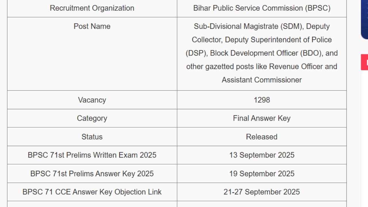 It’s worth noting that the Bihar Public Service Commission (BPSC) is currently conducting numerous recruitments, resulting in many candidates applying. If you also took the 71st Combined Preliminary Competitive Examination, the BPSC has released the 71st CCE Final Answer Key here. The results will be released soon.