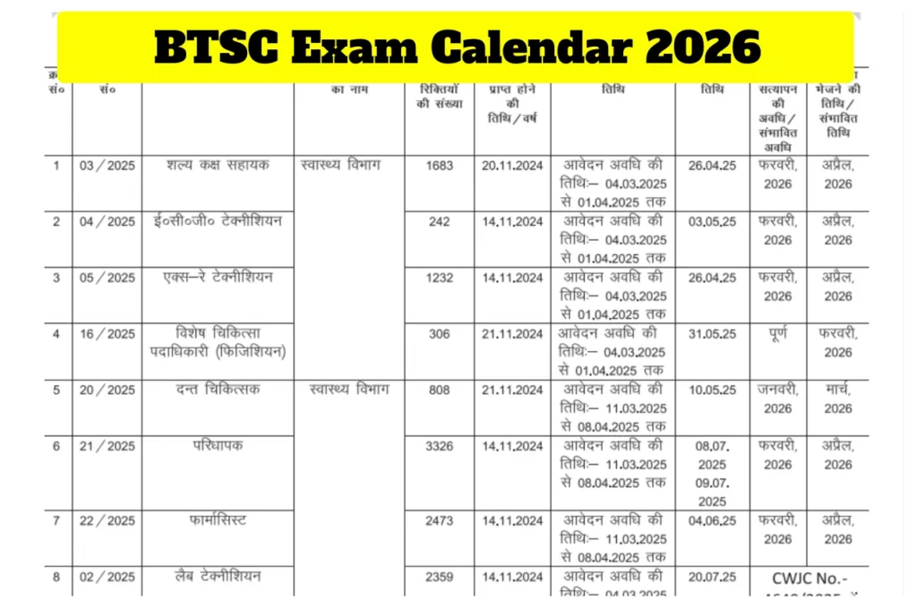 BTSC Exam Calendar 2026: Exam Calendar Released