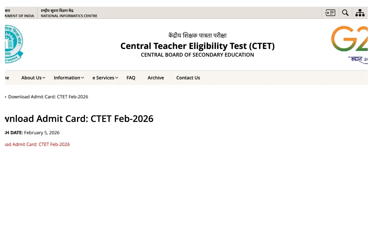 On the homepage, click on the ‘Download Admit Card for CTET Feb 2026’ link.