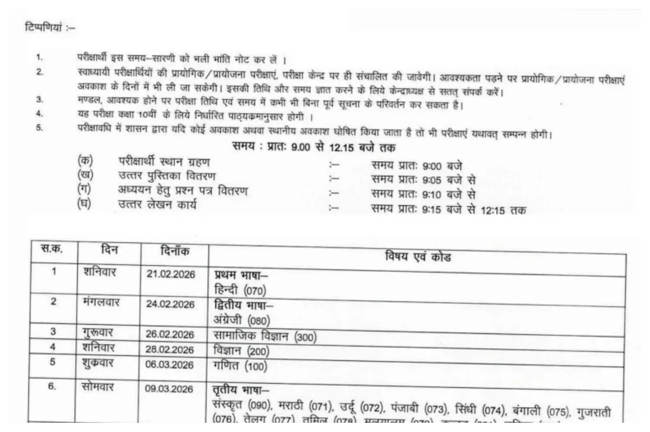 CG Board Time Table 2026: The Chhattisgarh Board of Secondary Education will conduct the 2026 High School (10th) and Higher Secondary (12th) Main Examinations between February 21 and March 13, 2026. The 12th board exams will be held from February 20 to March 18, 2026. With very little time left before the exams begin, students are actively preparing. The exam timings are set from 9:00 AM to 12:15 PM. Question papers will be distributed to students at 9:10 AM. Students will have time to enter their answers from 9:15 AM to 12:15 PM.