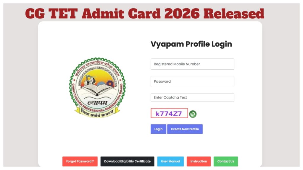 CG TET Admit Card 2026 Declared: Good news for candidates who have applied for the Chhattisgarh Teacher Eligibility Test (CG TET). Candidates appearing for the CG TET exam are eagerly awaiting their admit cards. The Chhattisgarh Professional Examination Board has now made the admit cards available for download.