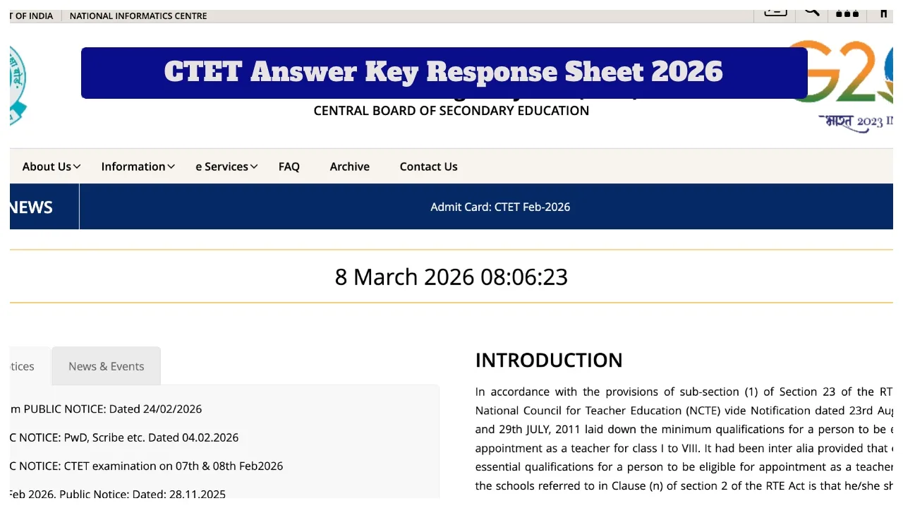 CTET Answer Key Response Sheet 2026: Candidates who appeared for the Central Teacher Eligibility Test (CTET) in January 2026, conducted by the Central Board of Secondary Education, are eagerly awaiting the answer key. The CBSE will soon release the provisional answer key and candidates’ OMR sheets on the official website, ctet.nic.in. It is expected that the answer key download link will be activated by the end of March. This exam, conducted in various cities across the country, determines eligibility for teachers from classes 1 to 8.