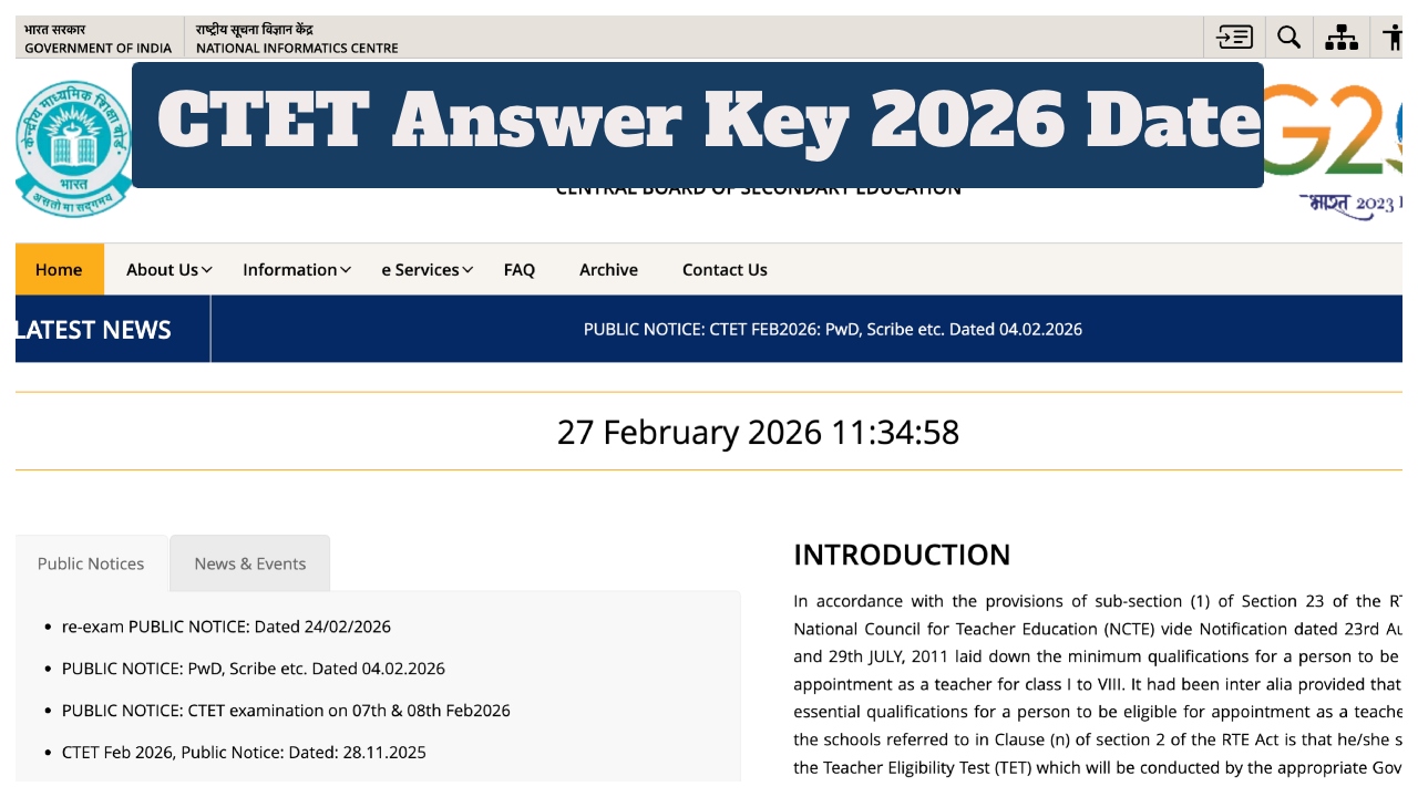 CTET Answer Key 2026 Date, Time Updates: CBSE will soon release the provisional answer key for the Central Teacher Eligibility Test 2026 (CTET 2026) February session. Candidates are eagerly awaiting the release of the answer key. The CTET 2026 answer key will be available for download on the official website, ctet.nic.in. Candidates will be able to download it as a PDF.