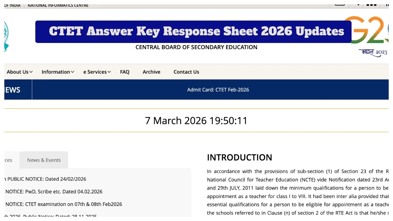 CTET Answer Key Response Sheet 2026 Updates: The Central Board of Secondary Education (CBSE) will soon release the provisional answer key for the Central Teacher Eligibility Test 2026. The exam for the February session was conducted on February 7th and 8th. Candidates who appeared in the exam are eagerly awaiting their answer keys. Candidates can download the answer key from the official website, ctet.nic.in. Along with the answer key, the board will also release the response sheet in which candidates wrote their answers.