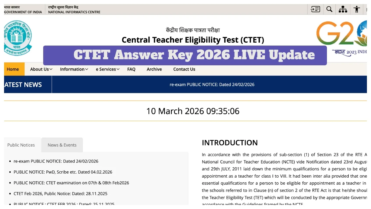 CTET Answer Key 2026 Updates: The Central Board of Secondary Education (CBSE) will soon release the answer key for the Central Teacher Eligibility Test (CTET) February 2026. Candidates are eagerly awaiting the release of the provisional answer key. Once the answer key is released, candidates can download it from the official Central Teacher Eligibility Test (CTET) portal, ctet.nic.in.