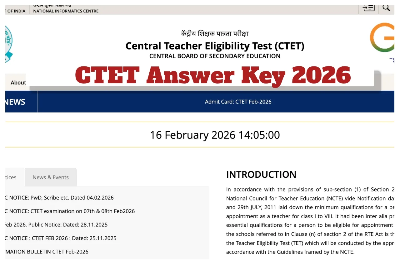 CTET Answer Key 2026 Announced Soon: The Central Board of Secondary Education will soon release the answer key for the Central Teacher Eligibility Test. The answer key is expected to be released by mid-March next month. However, there is no official confirmation regarding the result date yet. After the answer key is released, candidates can check their results on the official website, ctet.nic.in. Candidates will need to enter their registration number and password to check their results. The CBSE will first release a provisional answer key. Based on previous patterns, answer keys are released within 20 days of the exam. Therefore, it is estimated that the final answer key may be released by the end of February. However, the CBSE has not yet shared official information.