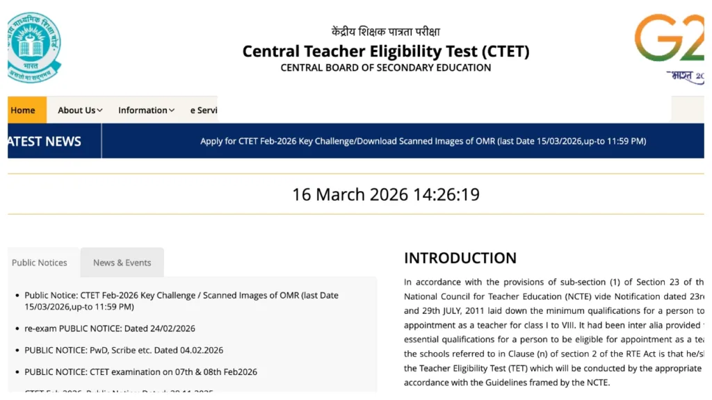 Once the CTET Result 2026 is declared, you must first visit the official website: ctet.nic.in